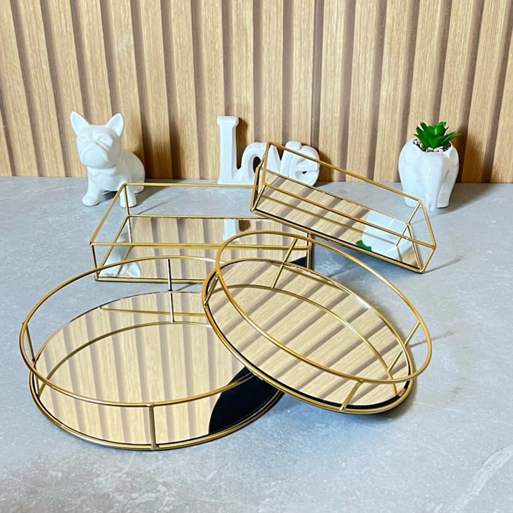Bandejas Espelhadas Douradas Decorativas | Alma & Casa