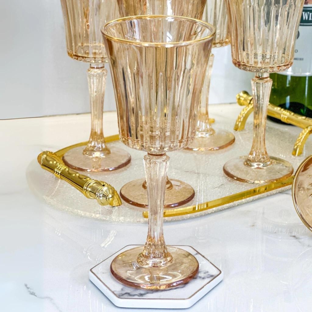 Jogo de Taças Ambar Egeu com Borda Dourada: Requinte à Mesa | Alma & Casa