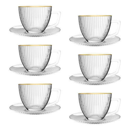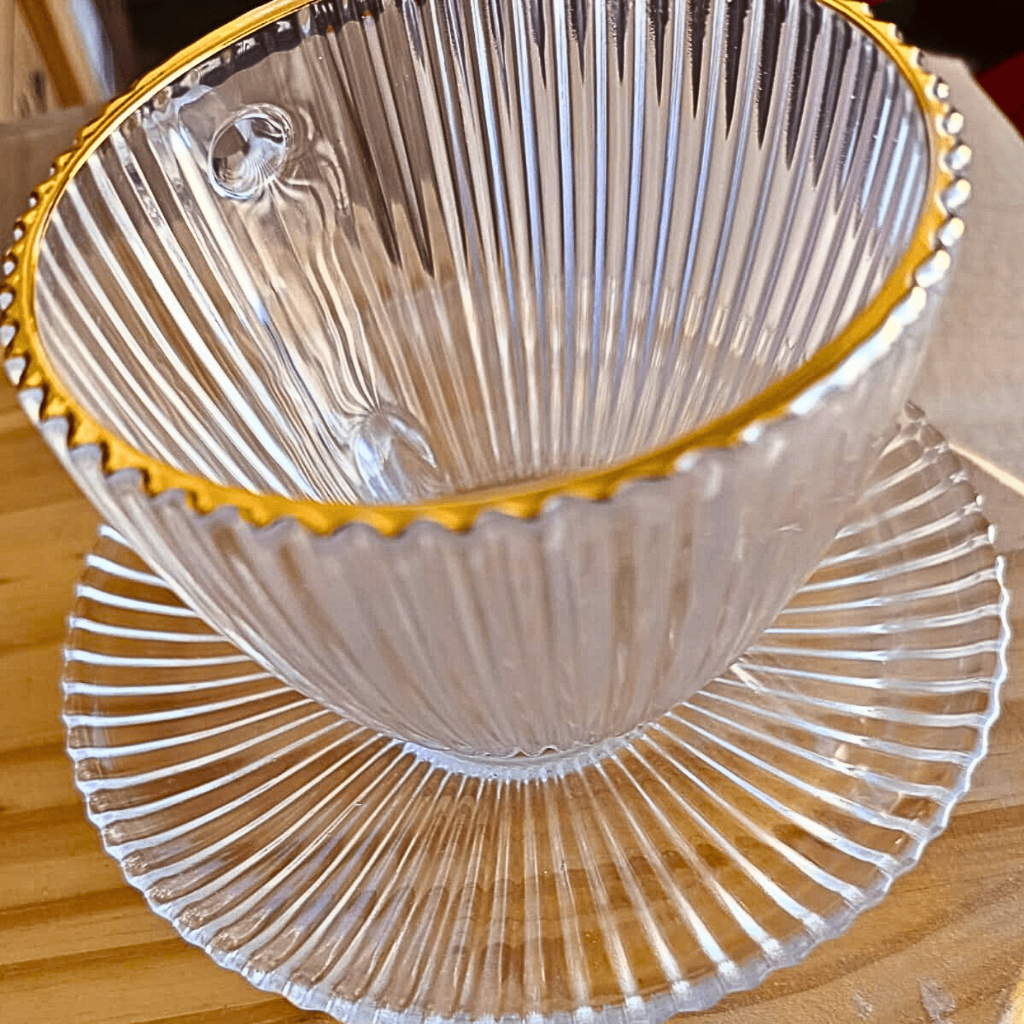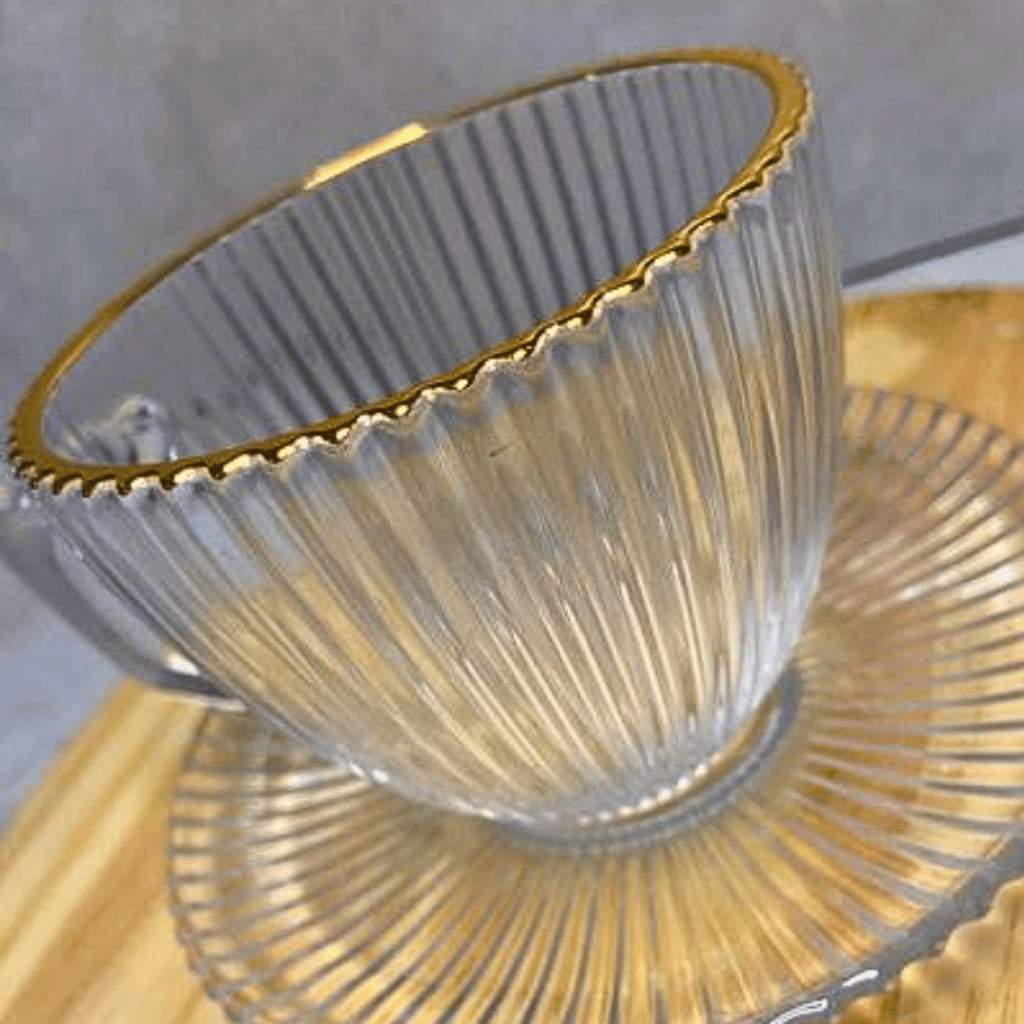 Conjunto de Xícaras de Vidro com Borda Dourada | Alma & Casa