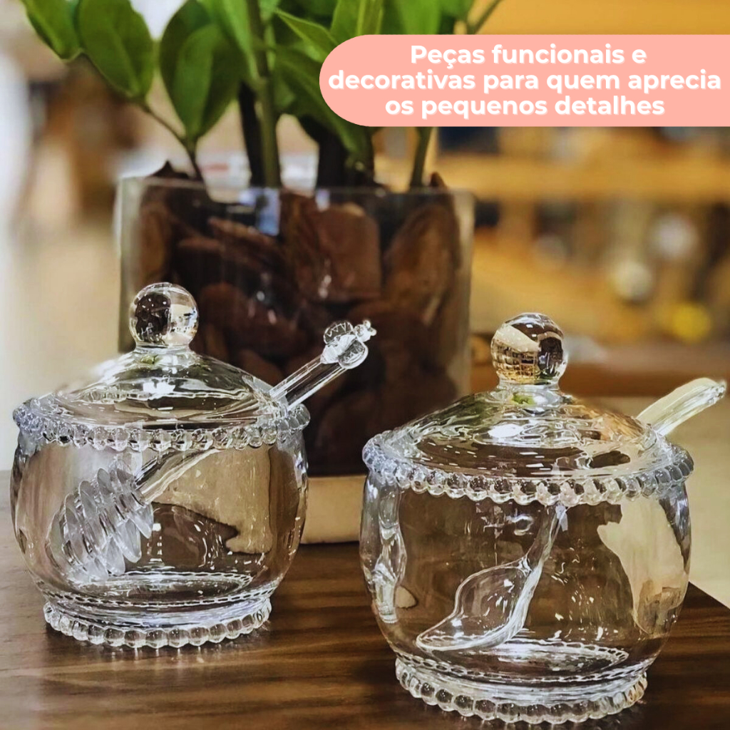 O Conjunto de Cristal com açucareiro, meleira e bandeja é a escolha perfeita para elevar a elegância da sua mesa posta. Com design translúcido e lapidações delicadas, ele imprime sofisticação ao servir doces e mel, seja em ocasiões especiais ou no cotidiano.