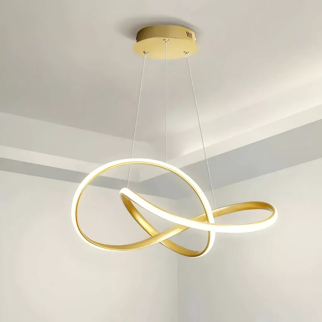 Lustre Pendente Dourado com Luz Escultural | Alma & Casa