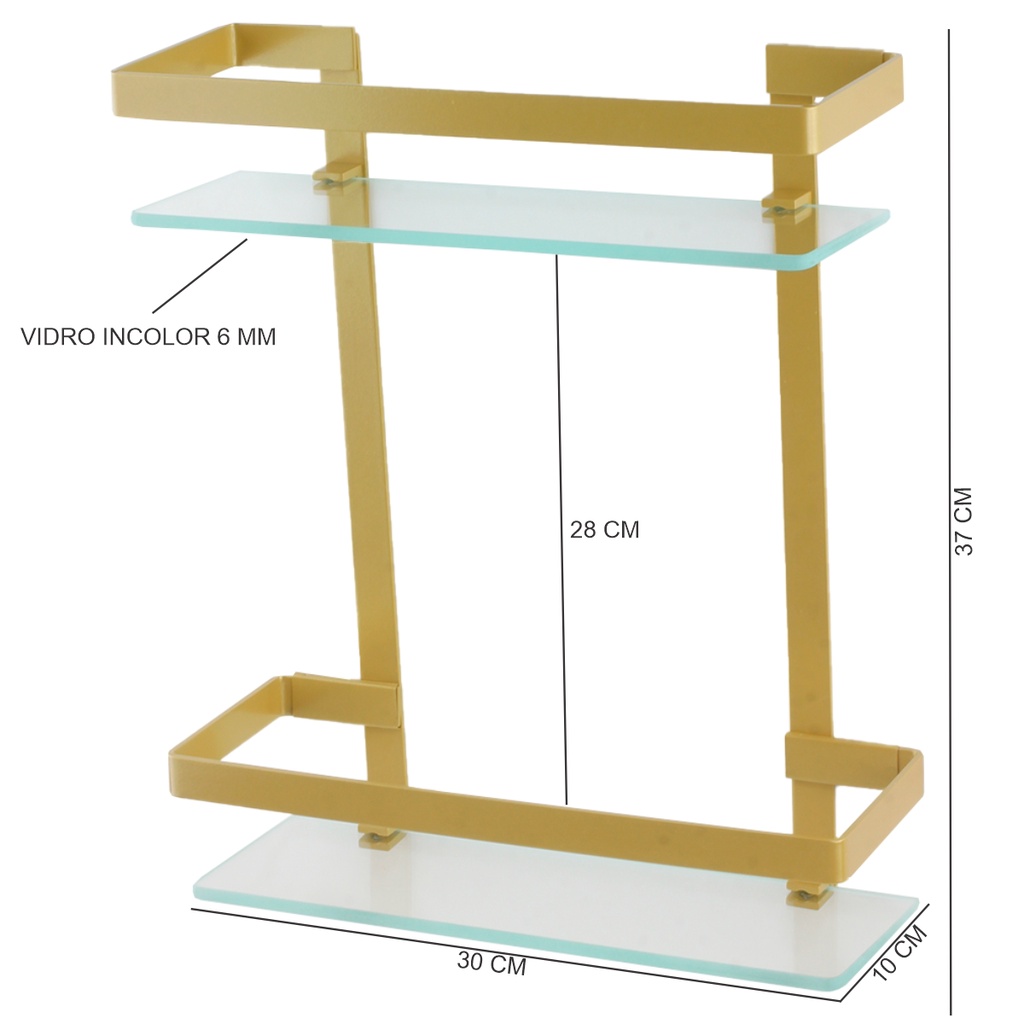 • Prateleira em vidro incolor com 6 mm de espessura